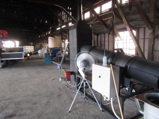 左から籾殻供給機、燻炭キルン10-9、燻炭吸い込み装置が
